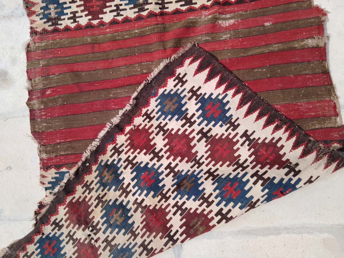Antique 1880 Caucasian Shirvan Saddle bag panel mafrash kilim rug 3'4"x6'3" 100x190cm