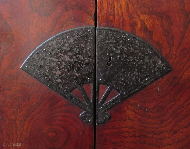 Rare Antique Japanese Solid Keyaki Burl Fan Lock Tansu