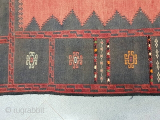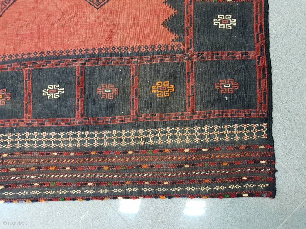 Rare baluch sofreh in red , with nine stars ,borders are oriented with colourful piles stars , endings are folded