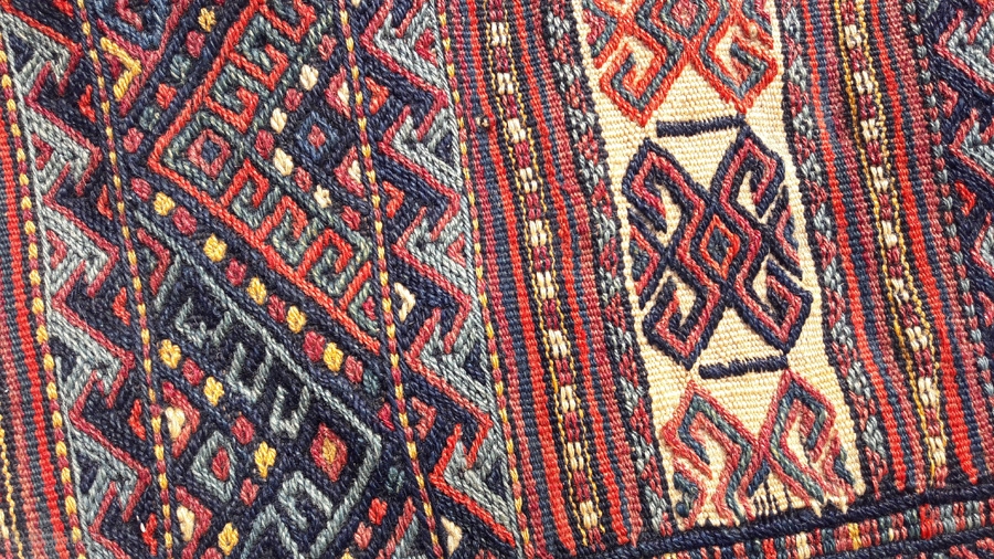 Large antique Kordi grain bag, good colours, great condition 44in by 31in