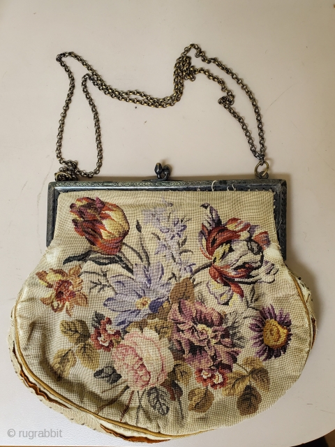 This beautiful handwoven french purse is not in great condition. Lots of tearing alongside the handbag; main print on face still intact.