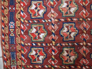 Handmade antique Persian Kurdish rug 3.9' x 7.5' (119cm x 230cm) 1920s - 1c499