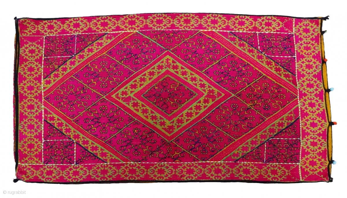 Pillow-Cover,Swat Valley(Pakistan). India.Cotton embroidered with floss silk.with woolen Braiding and Tassels.C.1900.Its size is 43cmx75cm(DSC06451).