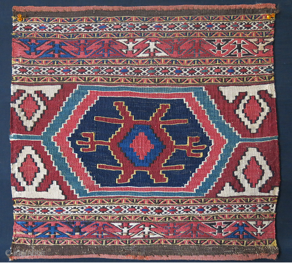 Shahsavan bedding bag end panel, circa 1900 or earlier, Size: 20" x 19" -- 51 cm x 48 cm