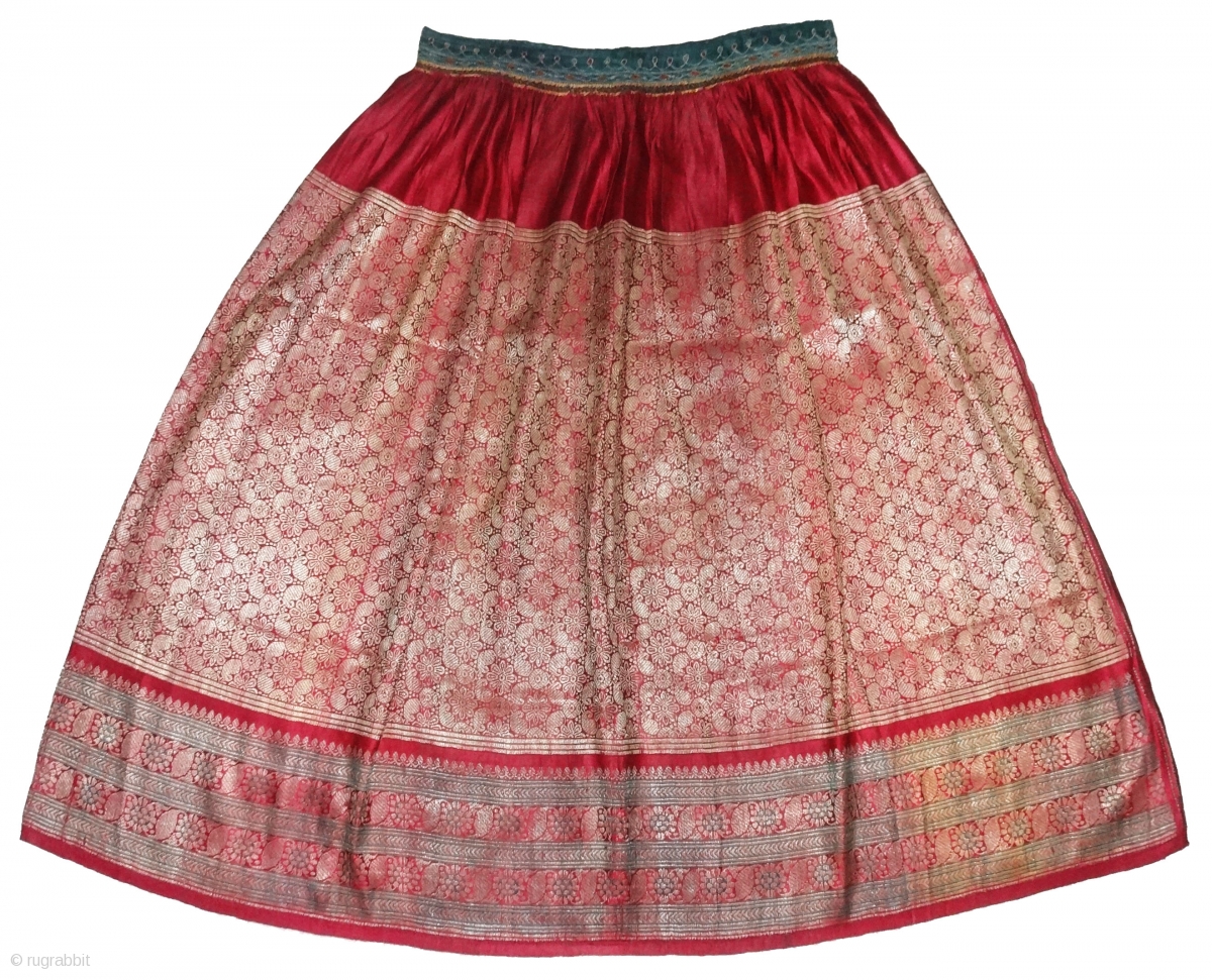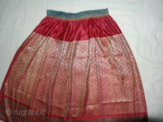 Khinkhab Ghaghra(Skirt),Real Zari Gold threads weaving on the silk,From Jamnagar,Gujarat, India. C.1900.The word Khinkhab, derived from the Persia,Mean's woven flower.Its size is Long-82cm,Round-210cm. Good Condition(DSC07061).