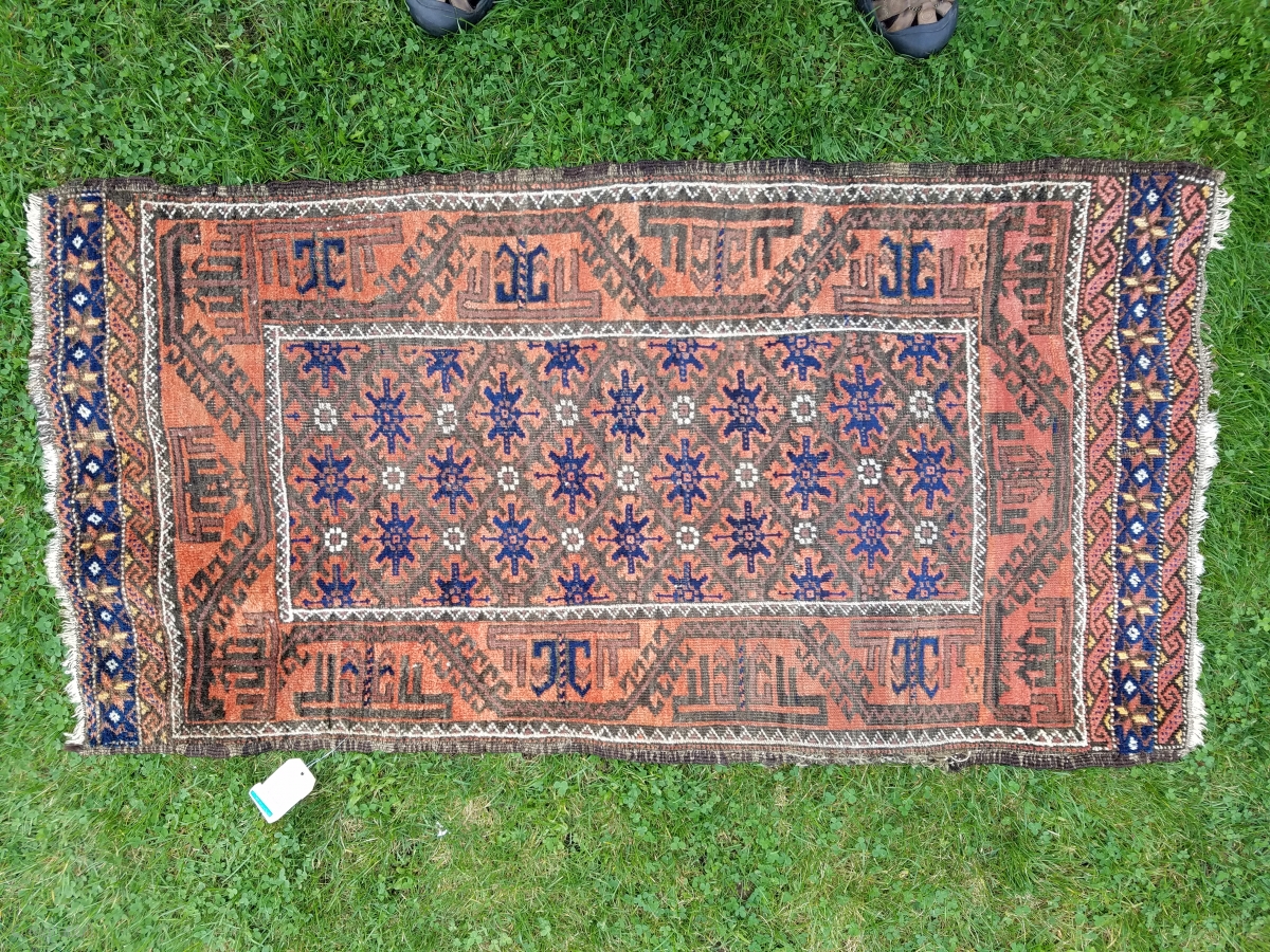 Baluch - 2.8 x 5 with interesting star skirts at each end. Evenly low and without any repairs