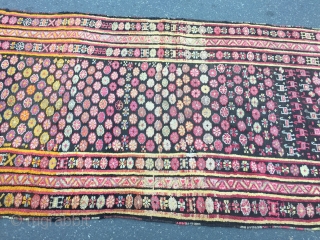Colorful and funky antique Caucasian Karabagh (Zakatala?) long rug, age: circa 1900. Size: ca 360x133cm / 11'9''ft x 4'4''ft