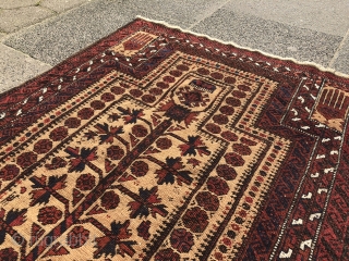 Very nice antique Baluch prayer rug with stylized hands, size: 142x90cm / 4'6''ft x 3ft
