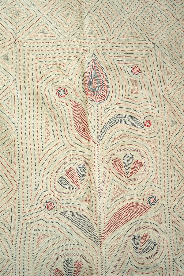 Vintage Kantha. a bird and flowers are described with delicate embroidery. Size 180 x 130cm No.719