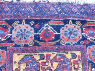 Persian Afshar Bag face, late 19th century, 1-7 x 1-8 (.48 x .51), rug was hand washed, saturated colors, great orange, green, gold, floppy handle, slight moth damage, 2 inch soumac piece sewn on top of bag face, plus shipping.