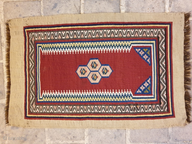 Shooshtar fine kilim with mehrab design 80 years old , 108 * 72 cm