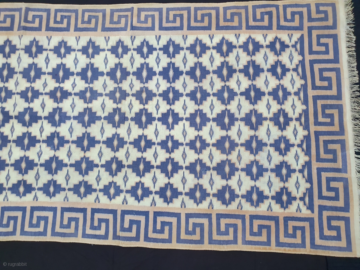Geometric Design Jail Dhurrie(Cotton)Tiles Design with Key Pattern Design border.From Gujarat. India.C.1900.Its size is 114X2085cm. Condition is very good(125937).