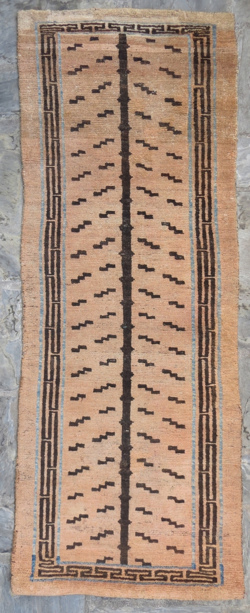 Tibetan tiger rug. Natural dyes with a line of indigo. All wool. Late 19th Century. Good condition, minor repairs.