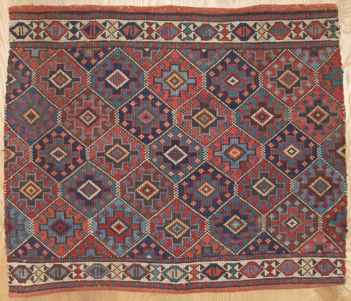 Antique Shahsavan mafrash panel, with diamond lattice design. www.knightsantiques.co.uk