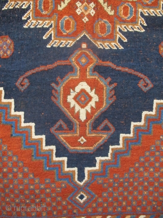 Antique Afshar Rug 1.60m x 1.36m (5'3" x 4'6"), beautiful colours and archaic features. Generally very good condition, with some minor corrosion in the blue field.