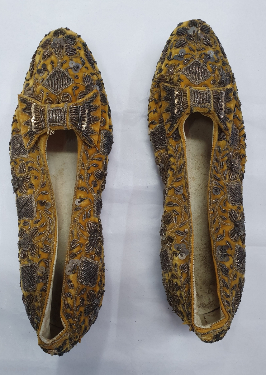 Pair of slippers for Women’s a Zardozi embroidery on the cotton Velvet. From Lucknow Uttar Pradesh India.C.1900 (20191204_154426).