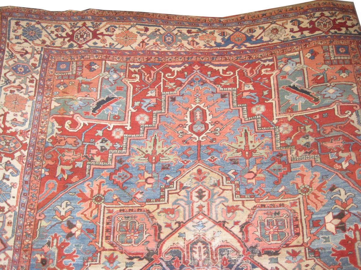 Serapi Heriz Persian knotted circa in 1895 antique, 375 x 307 (cm) 12' 4" x 10' 1" carpet id: P-1387