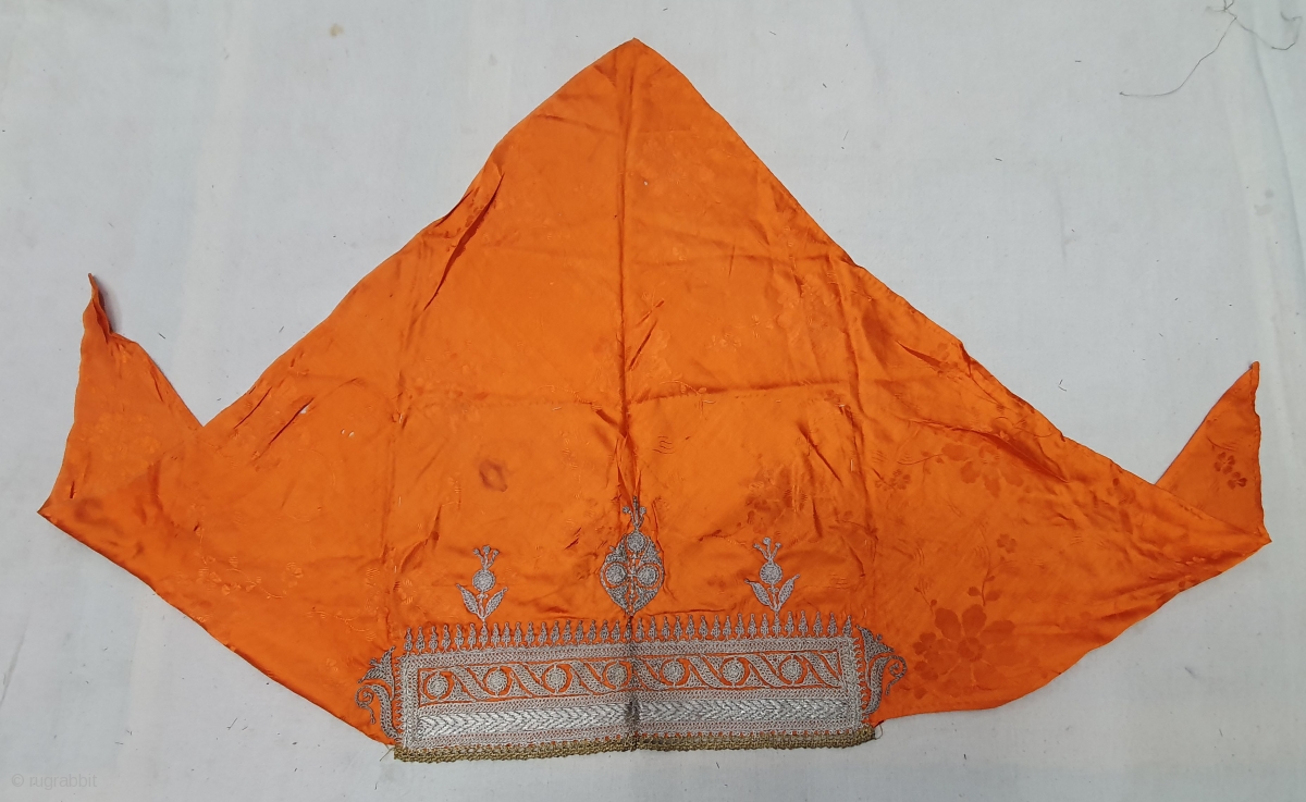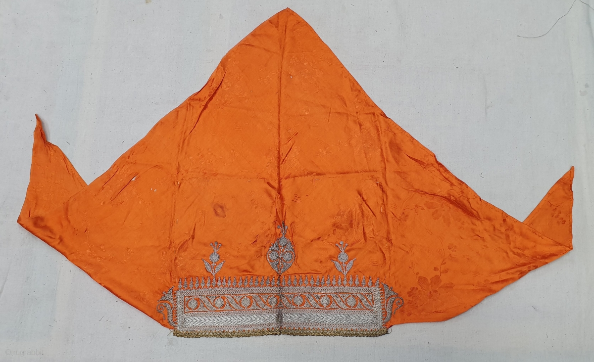 Sikh Community Head Cover (Musser) Real Zari (silver) embroidery on Mashru (Gajji Silk), From West Punjab Region of Undivided India. IndiaC.1900 (20191218_155621).