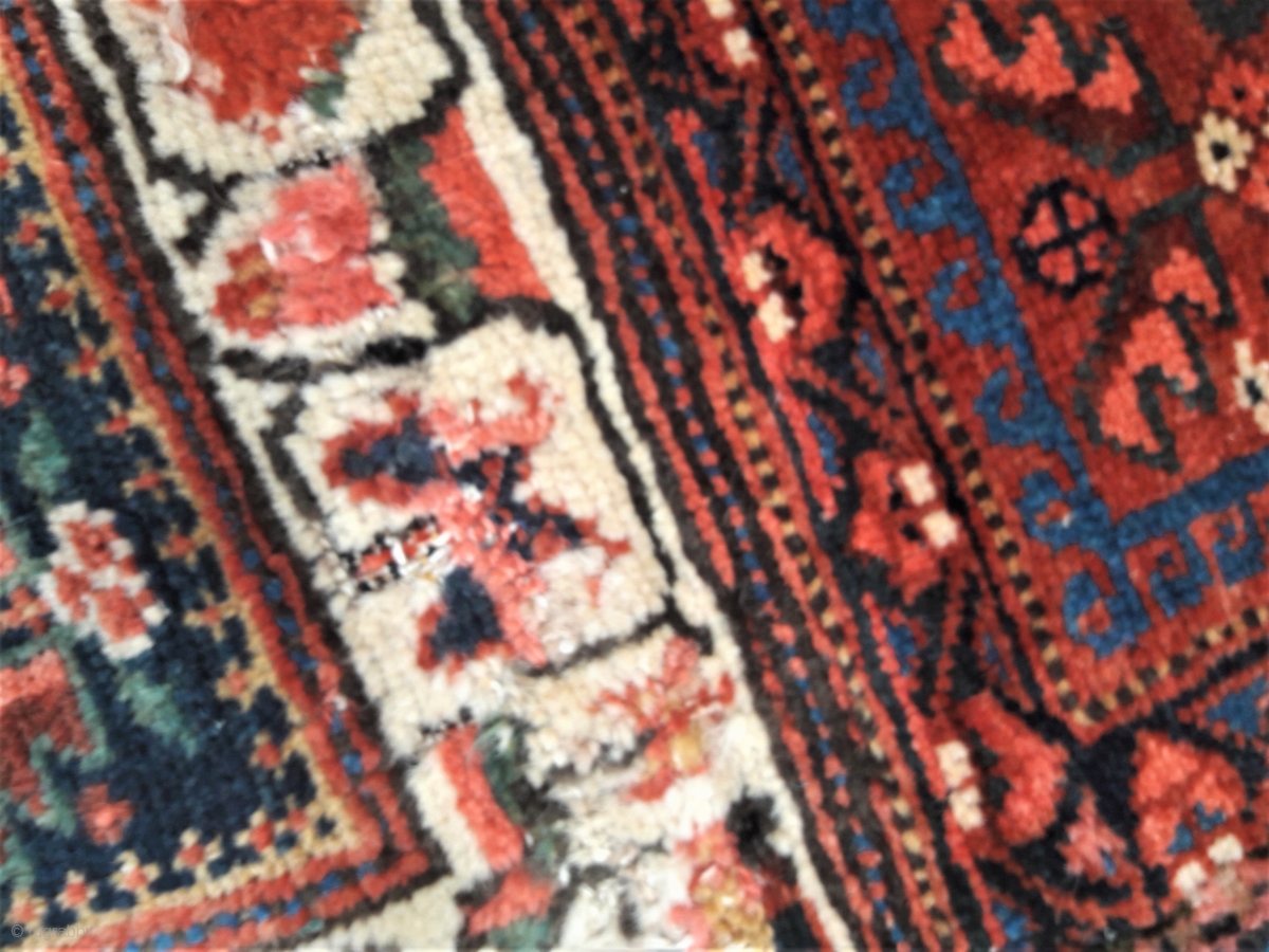 An unusual pair of antique N.W.Persian bags, piled front and back, recovered from use in upholstery. Some obvious areas of horrible re-piling, but colours are vibrant and saturated, and the wool is soft and lustrous.