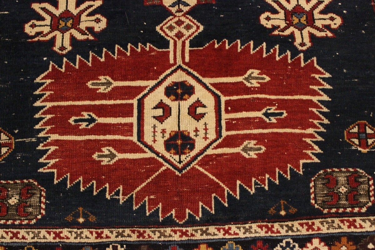 1870s Caucasian Shirvan. 4'2'' x 8'4''. Well drawn example. Some wear and repair. Natural colors.