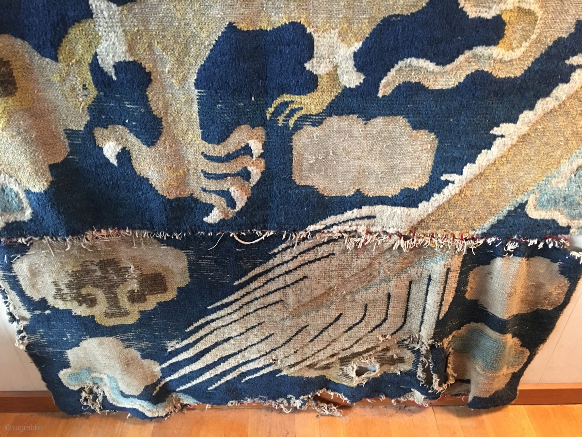Early 18th c Ning Xia pillar rug fragment with great charisma. in two parts and missing its head.