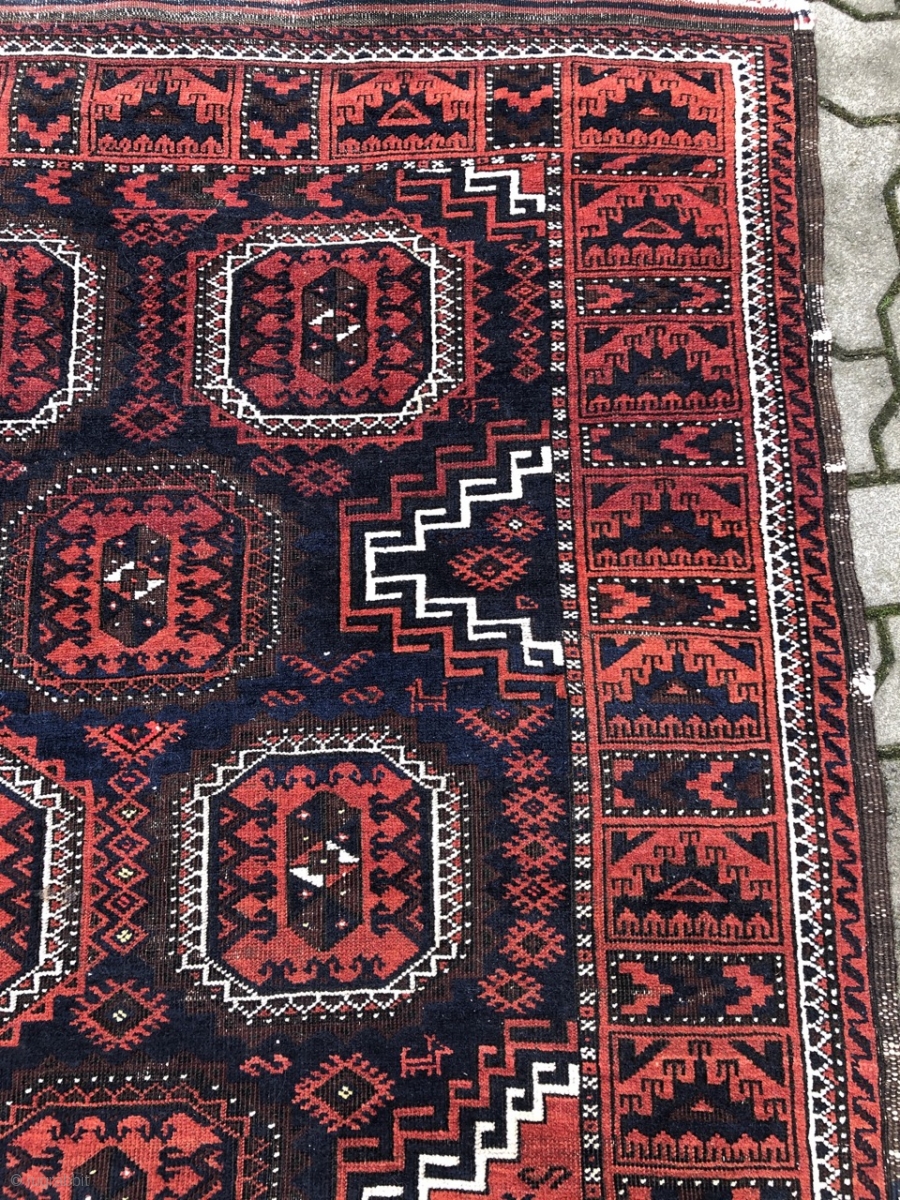 Fine antique Torbat e Heydarieh Baluch rug with lovely small animals and a cool "Ufo" border, size: 205x115cm / 6'7''ft x 3'8''ft.