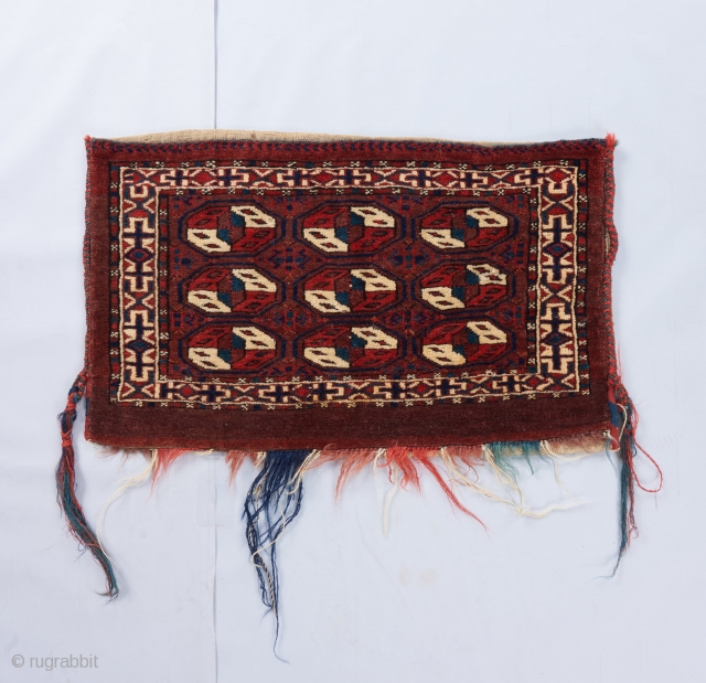 a complete Yomut bag in excellent condition with a somewhat rare design. All good color. Probably late 19th but charming nonetheless and priced accordingly.