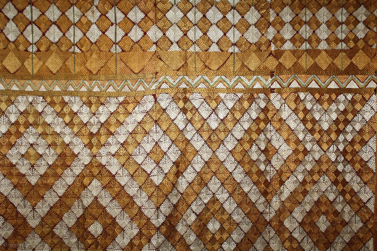 Phulkari From West (Pakistan) Punjab India called As Rare Patang Design Bagh.Floss Silk on Hand Spun Cotton khaddar Cloth.(DSL03550).