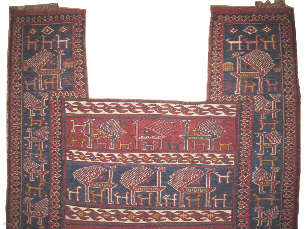 Horse cover Soumak Caucasian, woven circa in 1905 antique, collector's item, 128 x 98 (cm) 4' 2" x 3' 3" carpet id: A-111