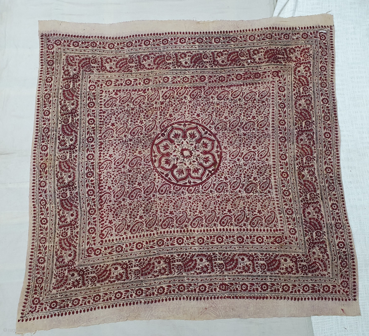 Block-Print Wall Decoration (Cotton), Probably From Sidhpur Patan, Gujarat Region of western India. India.C.1900.Its size is 125cmX125cm(20200213_142636).