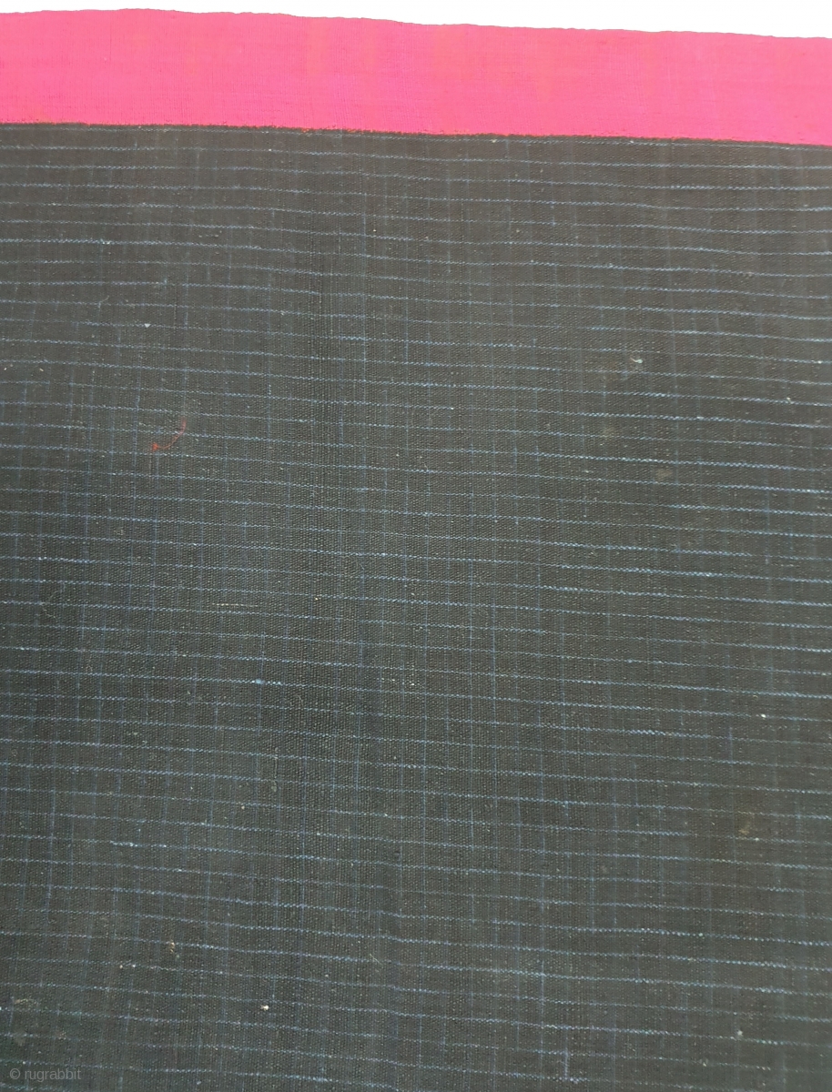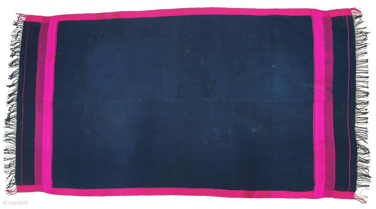 Waziri Shawl (Indigo Blue Colour With Yellow Stripe Check Design) for Man From Waziristan, Pakistan. India.C.1900.Natural Dye with Hand Woven Cotton and silk ends,with silk end borders.Its size is 129cmX230cm(20200229_141204).