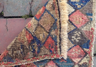 Shahsavan Chanta-- Circa 1900 or older. 11 x 11 inches.South Caucusus. Brown is undyed wool. Rare. Very good condition. $10 Domestic shipping.