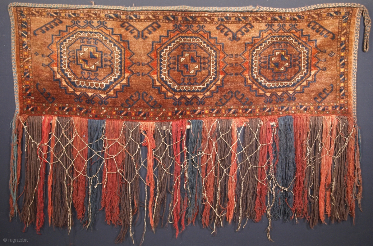 This large size Ersari torba was probably woven as a dowry item and used to decorate the side of a camel during the wedding procession. The torba has three large turreted guls to the face.