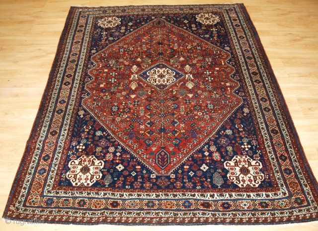 Antique Abedeh rug with the tribal medallion design, a rug with outstanding colour.
