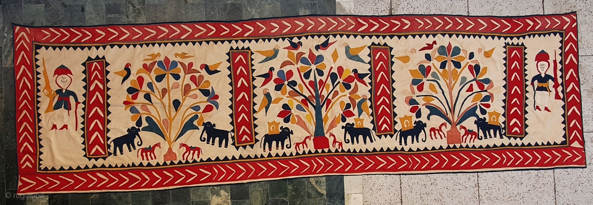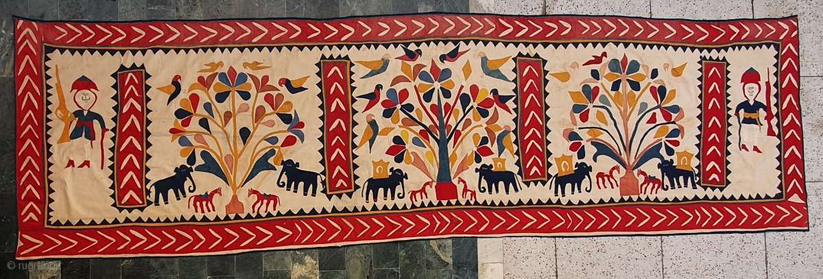 Wall Hanging(Tent Decoration) Applique work from the Kathi Darbar Community of Saurashtra Gujarat. India.C.1900.Cotton with cotton Applique work.Its size is 130cmX450cm(20200408_154430).