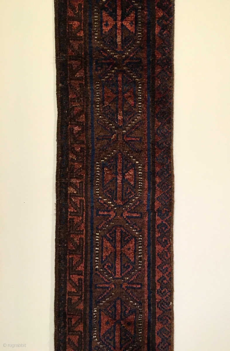 Antique 'Khan' Carpet Border Fragment. s.w. Afghanistan. Chakhansur. Late 19th Century. We can only imagine what the full carpet looked like. This complete main border fragment, end to end, now represents it. Madder red has turned to a glowing copper on lustrous wool highlighting the main archaic border motif. 5 colors. 13.5” x 14’0”. Carefully hand washed. No comparable example.