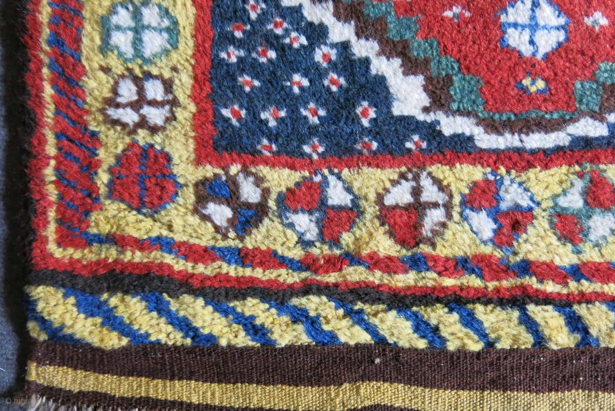 Luri Qashkai Gabbeh bag face with full thick pile. Saturated colors with silky wool. Circa 1900 or earlier size: 29" x 26" - 74 cm x 66 cm