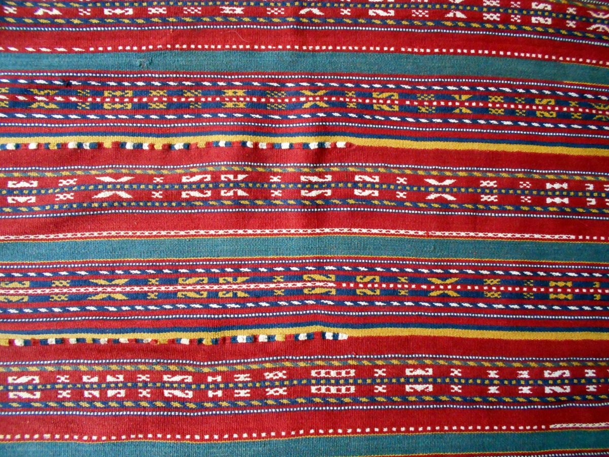 Uzbek horse cover, 41 x 59 inches excluding frills. Nice piece with good dyes; probably early 20th. In excellent shape, just one dime-sized reweave in field (see).