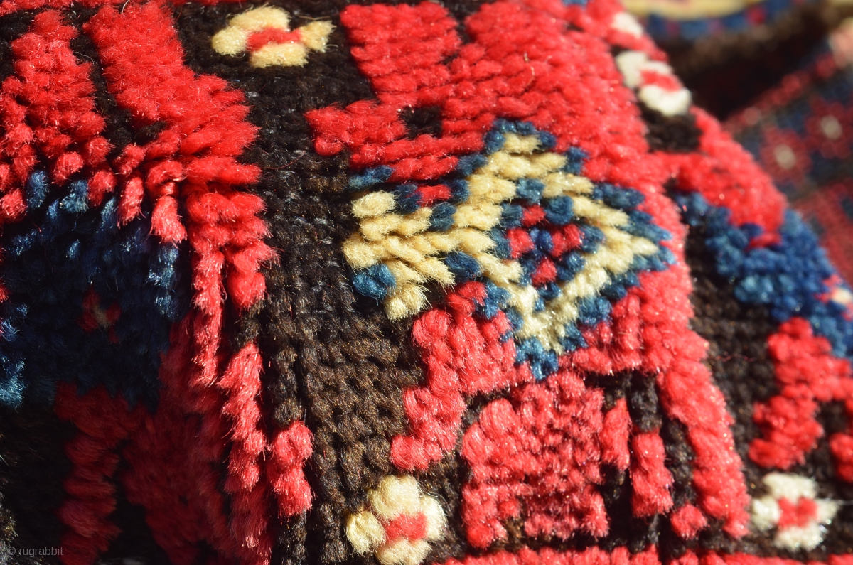 Antique Algerian rug Wonderful kermes red background and juicy pile.