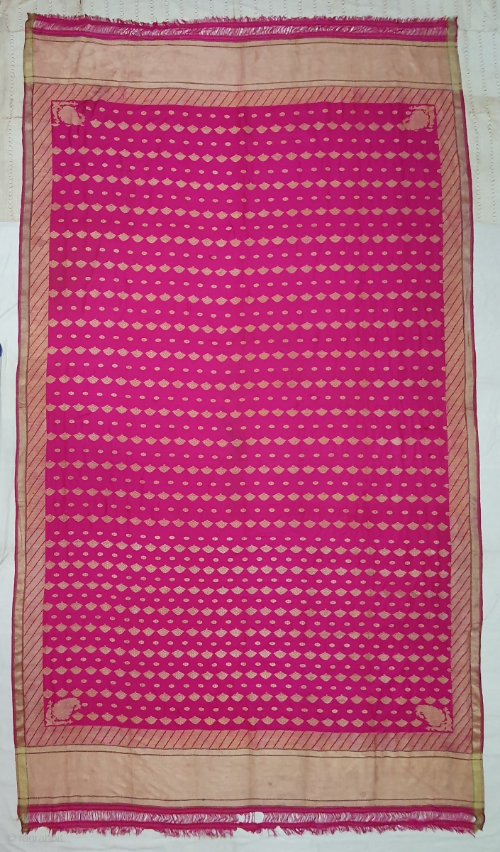 a Very Large Dupatta handwoven fuchsia silk with zari (Real Silver with Gold Polish) from Varanasi, Uttar Pradesh , India. c.1900. Good condition. Its size 175cmX315cm(20200715_152414).