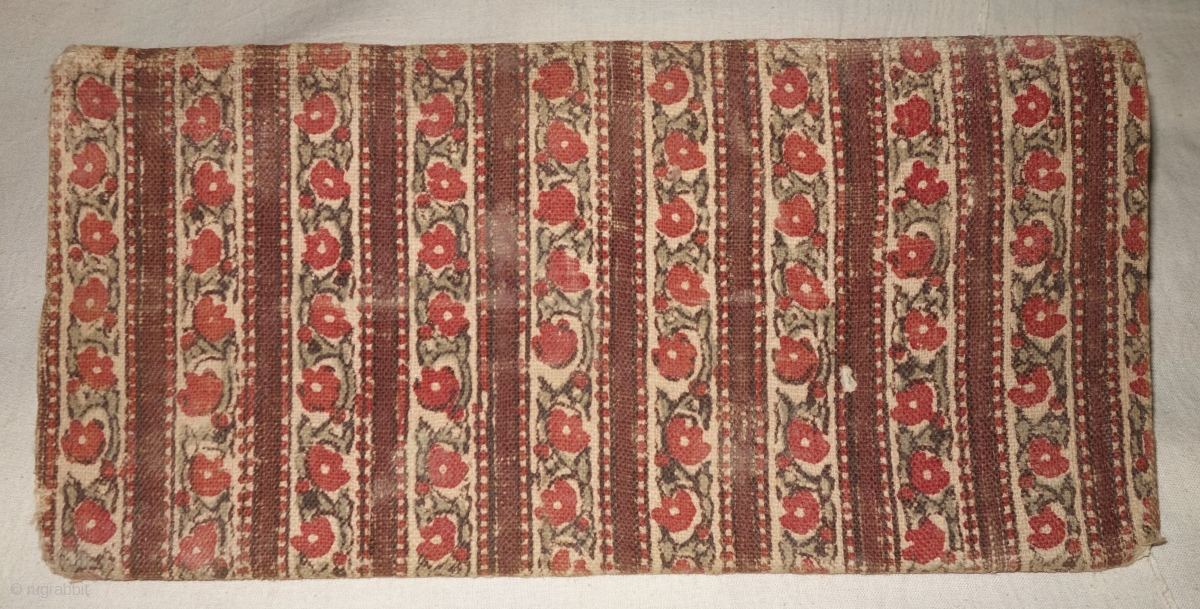 Early Sutra Book Cover, Wood block Print on cotton textile, On the White-Brown base colour with flower design,From Rajasthan. India.Circa 1900.Its size is 15cmx31cm(DSC08097).