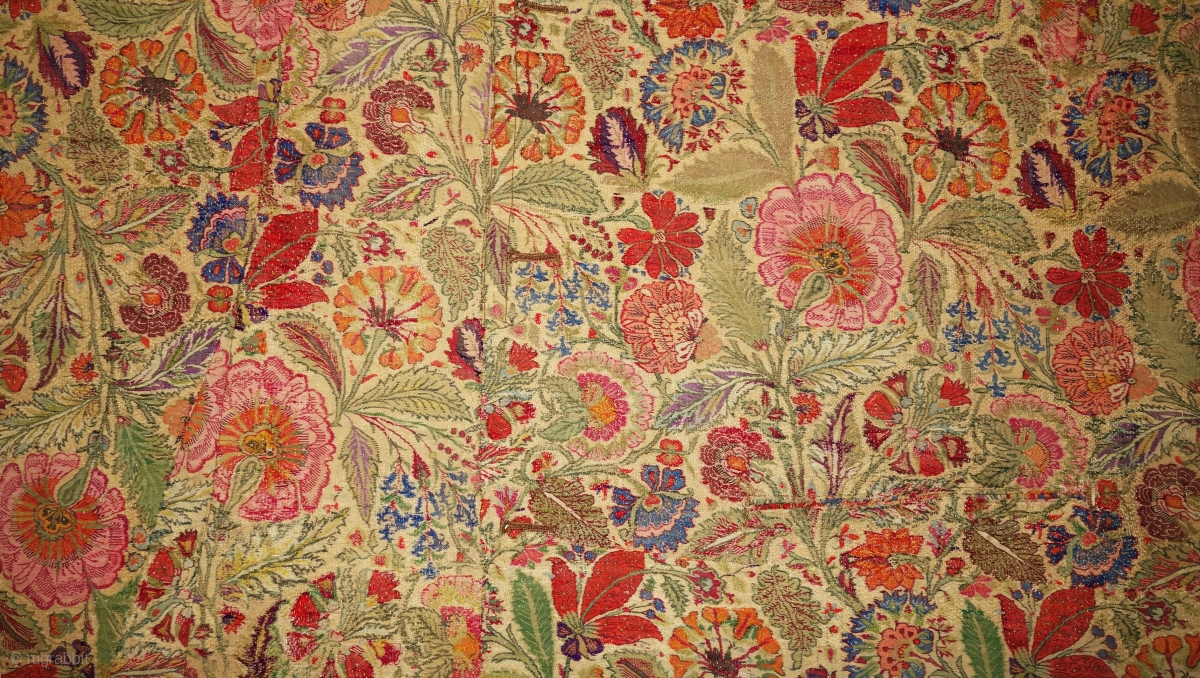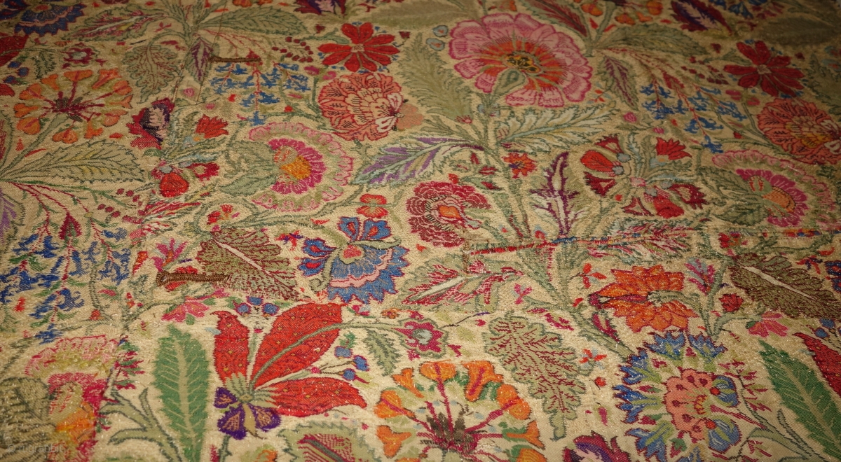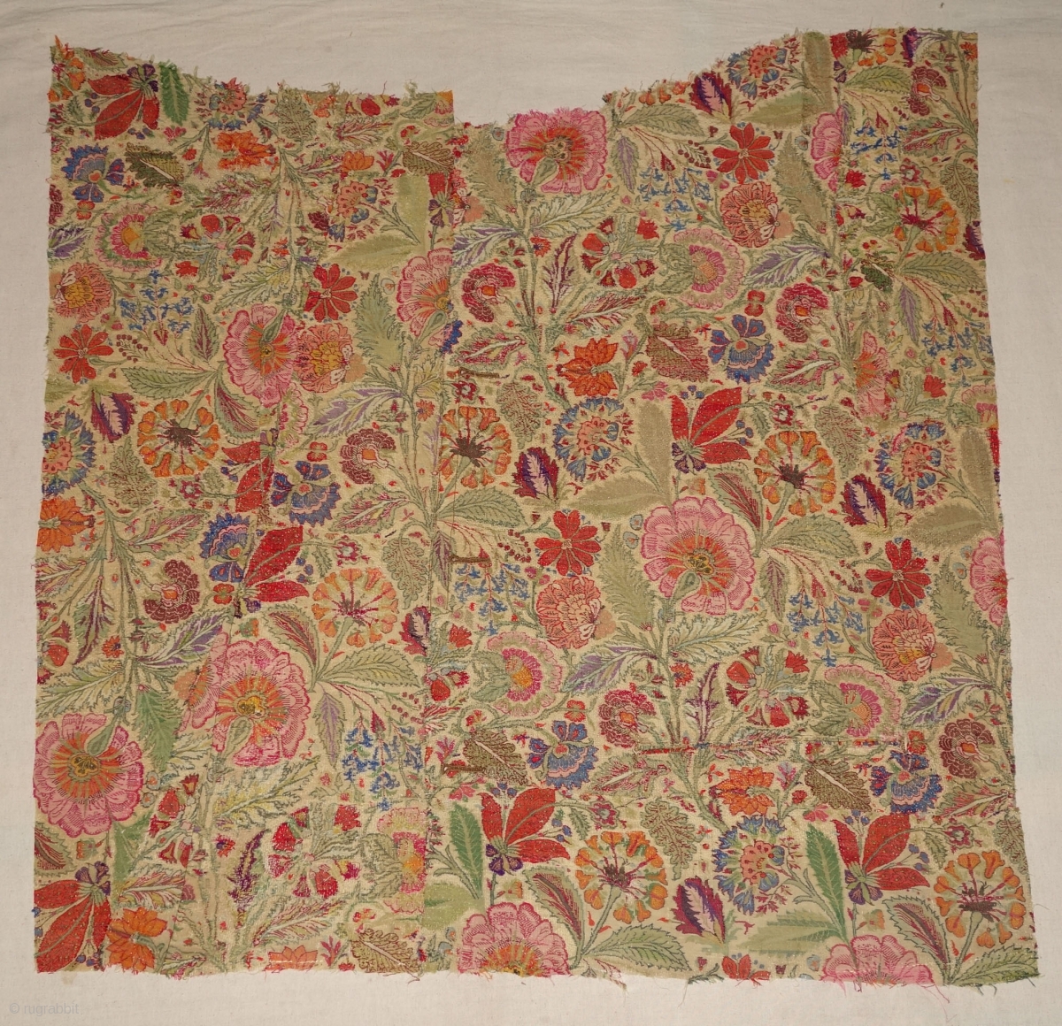 Deccani Shawl Fragment of Kani Jamawar, From Deccan-Hyderabad,South-India, India.Shwoing the Finest Floral Design. c.1750-1800. Its Size is 64cmx65cm(DSC08117).