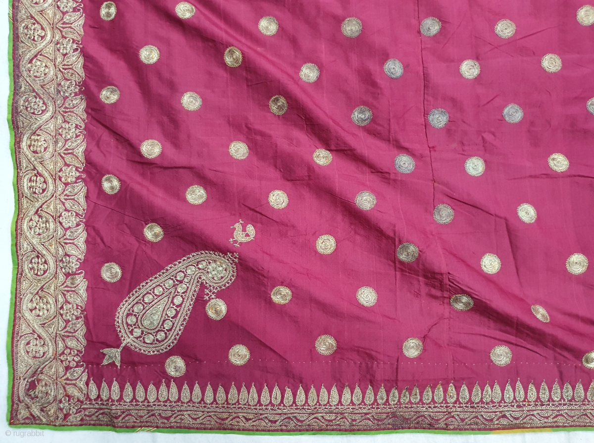 Very Rare Ceremonial Chamba Odhani With Rare Ghunghat Design, From Himachal Pradesh, India. C.1900.Silk ground with Real Zari Embroidery.Its size is 152cmX233cm (20200823_160551).