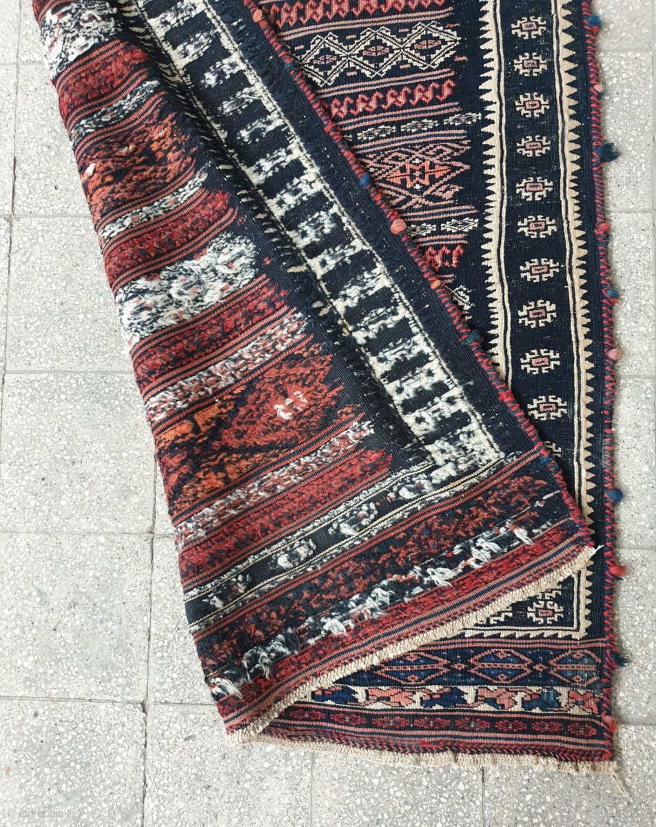 Antique Afshar kilim with Intricate fine weaving, naturally dyed