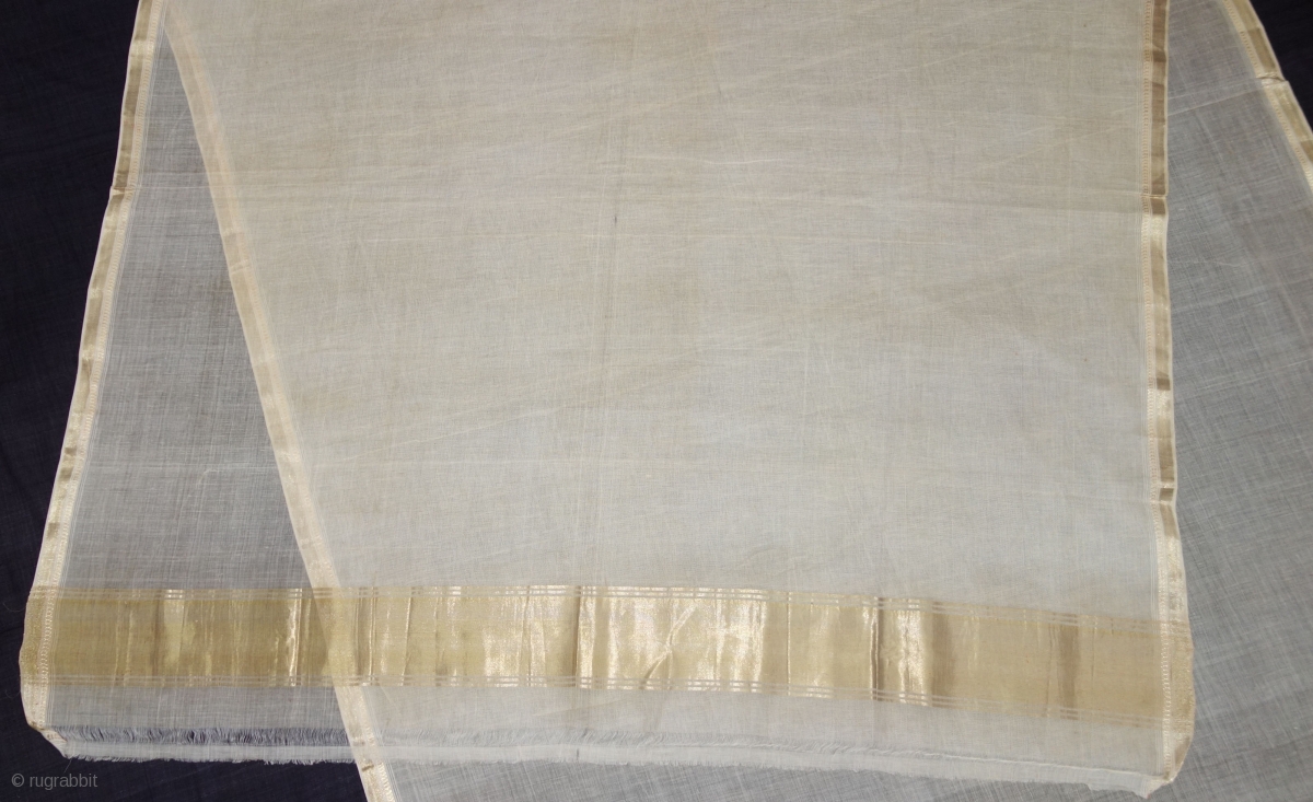 Zari (Real) Brocade Sadhu's(Priest)Shawl, From Deccan Region of South India.Fine Muslin Cotton with Real Zari Brocade weaving.C.1900.Its size is 128cmX260cm(DSC08225).