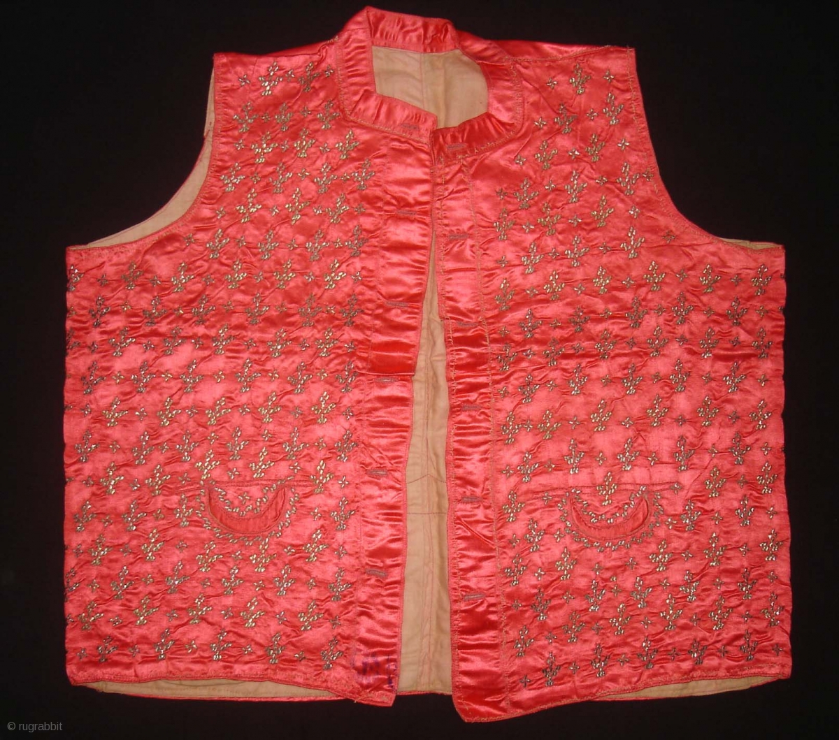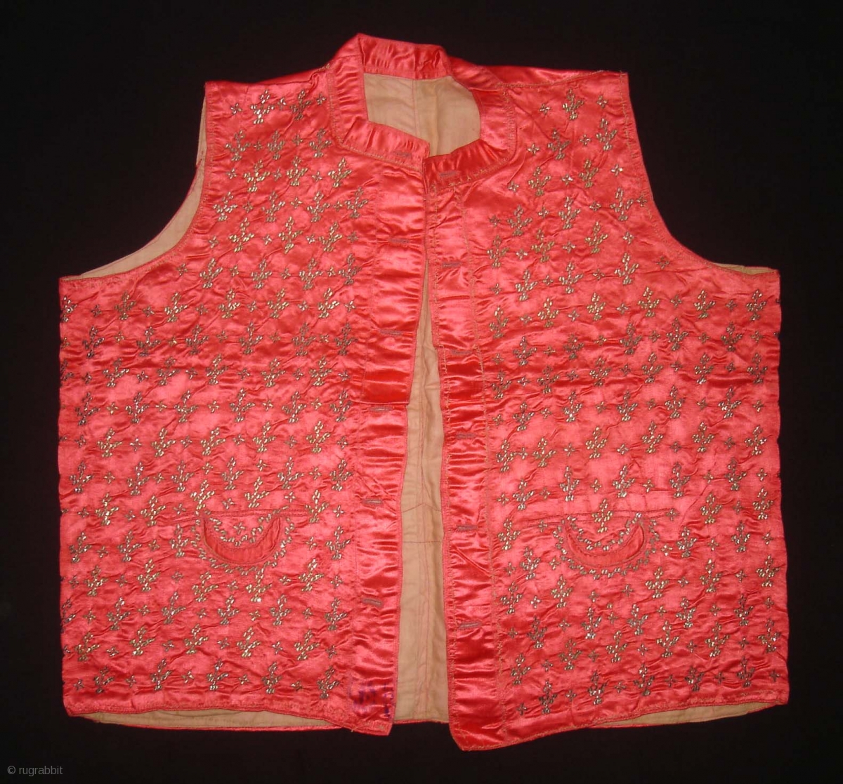 Child Waistcoat(sadri),Badla Work(Real Silver)On Gajji-Silk,Worn by Royal Vohra Muslims Community Of Sidhpur,Patan, Gujarat. India.C.1900. L.44cm,W.44cm(DSC02887).