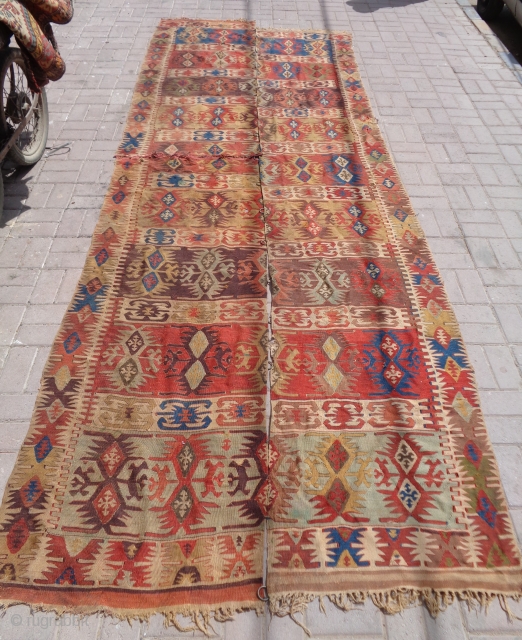 Anatlian Kilim with good colors and age,nice design,one part has been cut from center.E.mail for more info and pics.