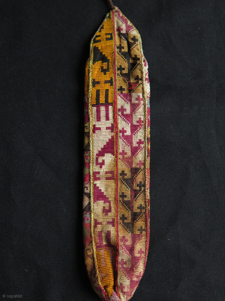 Antique Uzbek Lakai tribe silk cross stitched bag.