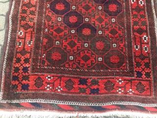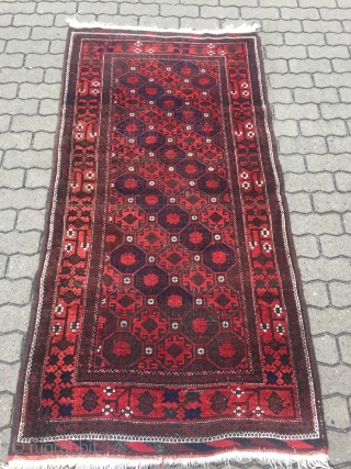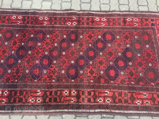 Looking for a christmas gift? a charming antique Baluch rug, beautiful design of diagonal stripes with memling gul separated by boxes of white rossettes. size: ca. 200x97cm / 6'5''ft x 3'2''ft