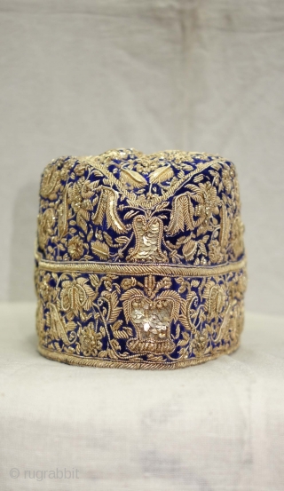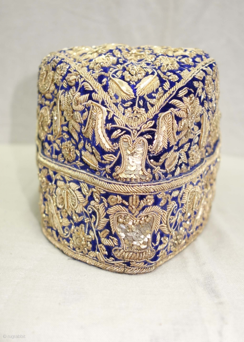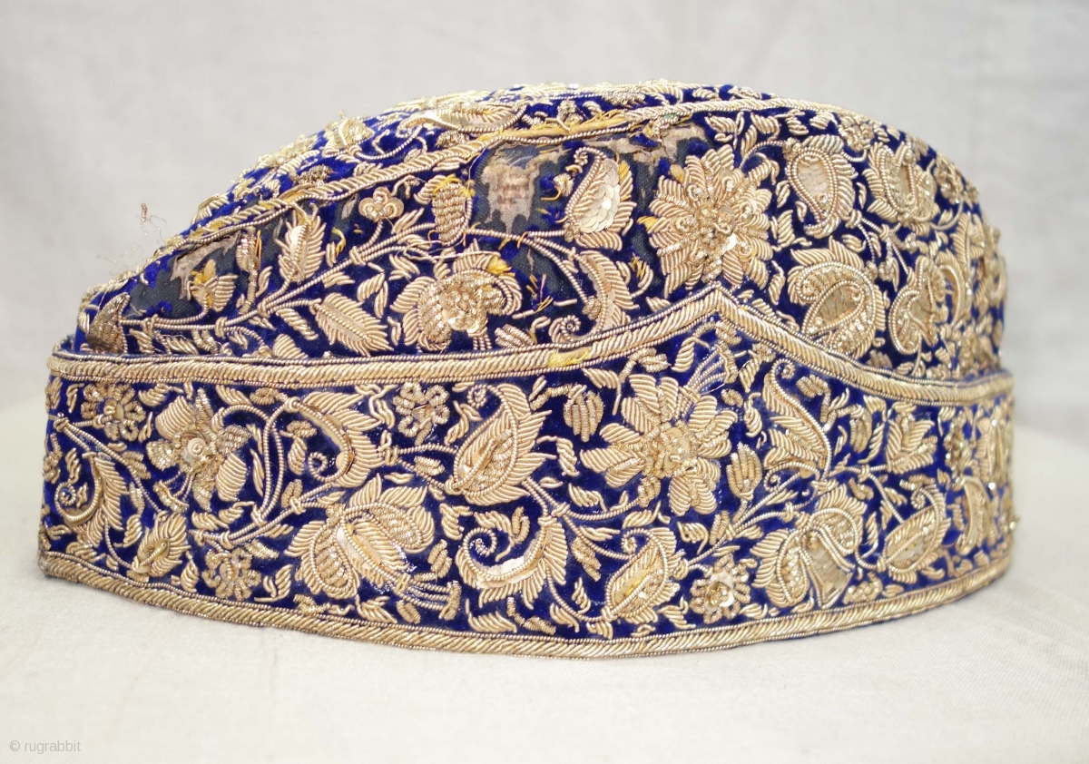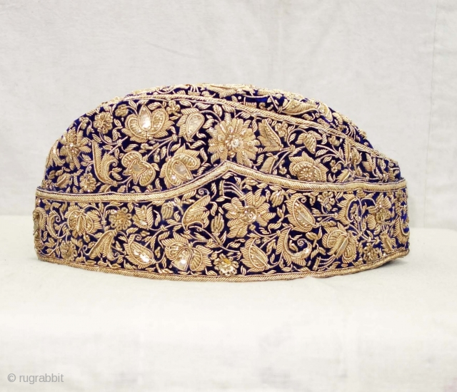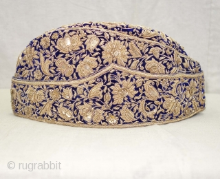 Nawabi Topi (Hat) Zardozi Embroidered on cotton velvet, With Real Silver Thread with Gold Polish, From Varanasi, Uttar Pradesh, India. India.Late19th Century.